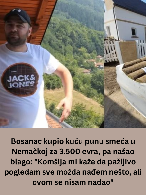 Dženan nije mogao da veruje. Za 3.550 evra, koliko je ponudio, postao je vlasnik kuće. I to ne bilo kakve kuće, već kuće u kojoj je bilo mnogo smeća, ali i nešto neobično. Kuća je bila prazna već tri godine jer je prethodna vlasnica umrla, a niko nije bio da nasledi njenu imovinu. Prvobitna cena kuće bila je oko 6.000 evra, ali je Dženan uspeo da je spusti na samo 3.550 evra. Kuća je bila zapuštena, ali u njoj je bilo mnogo stvari koje je Dženan morao da očisti. Iako je bilo mnogo smeća, nije se žalio. “Nisam imao ništa protiv, jer kad sam to sve očistio, ostala mi je kuća”, kaže on.