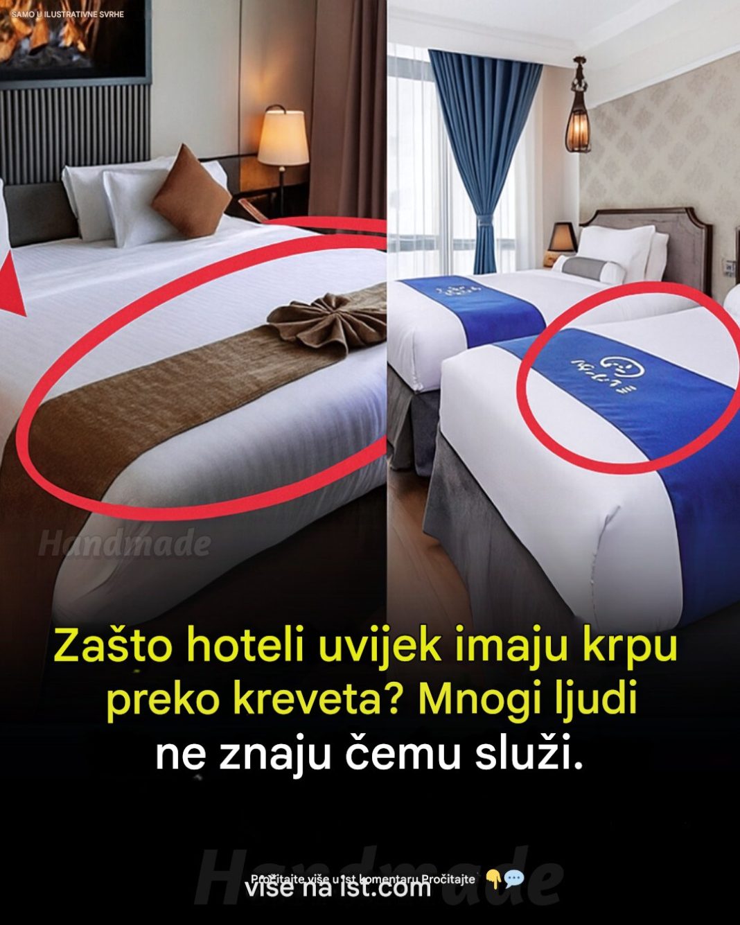 Kada prvi put uđemo u hotelsku sobu, obično nam pažnju privuku veliki bijeli jastuci, savršeno zategnuta posteljina i uredno složen jorgan. Međutim, pri dnu kreveta često se nalazi i jedna elegantna traka od tkanine. Na prvi pogled mnogima izgleda kao običan dekorativni detalj koji je tu samo da soba izgleda ljepše i luksuznije. Ipak, iza tog naizgled jednostavnog komada tekstila krije se mnogo više praktičnih razloga.
