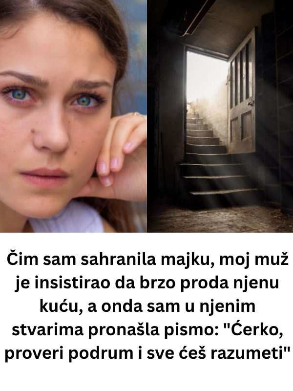 Na koverti je pisalo: “Ćerko, proveri podrum i sve ćeš razumeti.” Iako je podrum bio mesto straha iz detinjstva, sada je morala da siđe. Baterijska lampa joj je osvetlila put do starog ormara, au njemu je pronašla skrivenu pregradu. Tu je bila metalna kutija sa dokumentima, novcem, pismima i fotografijama. Jedna od njih prikazivala je njenu majku sa nepoznatim muškarcima, dok je druga pokazivala dete koje nije bilo ona. Pismo joj je otkrilo šokantnu istinu — imala je brata. Njeno srce je bilo slomljeno, ali istina je bila tu, skrivena sve ove godine.