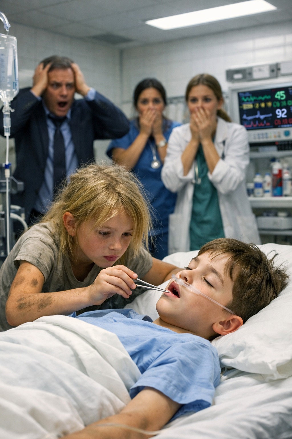 U isto vrijeme, u bolnici se nalazila i djevojčica koja je čekala svoju majku, zaposlenu u pomoćnom osoblju. Dok su prolazili sati, djevojčica je sjedila u blizini čekaonice i slušala razgovore odraslih. Iako nije imala medicinsko obrazovanje niti iskustvo u bolničkom radu, nosila je u sebi jedno lično sjećanje koje joj je odjednom počelo izgledati neobično važno.