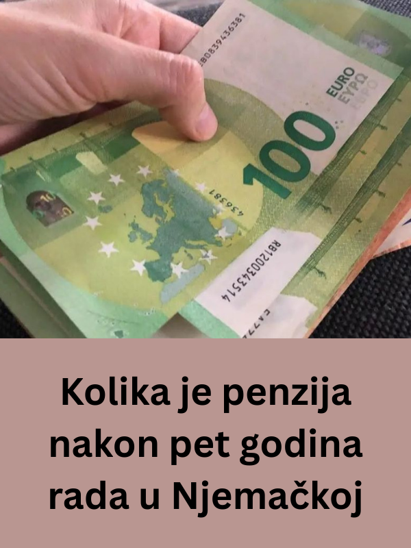 - Mogućnost odlaska u penziju nakon samo pet godina rada zvuči primamljivo, ali iznos koji se tada dobija prilično je skroman. Visina penzije u Njemačkoj računa se pomoću jasne formule koja uzima u obzir broj penzijskih bodova, faktor pristupa, trenutnu vrijednost penzije i vrstu penzije. Ako se pretpostavi da je osoba tokom pet godina rada ostvarila ukupno pet penzijskih bodova, a trenutna vrijednost jednog boda nakon povećanja u julu 2024. iznosi 39,32 eura, tada ukupna mjesečna penzija iznosi oko 196,60 eura.
