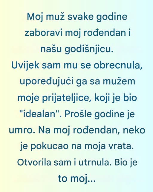 Nekoliko nedelja kasnije, na moj rođendan, dogodio se trenutak koji je promenio moj pogled na sve. Sedela sam kod kuće, u tišini, pokušavajući da se pomirim s tim da rođendani više nisu imali značenje. A onda, na vrata je pokucao advokat mog muža i mladi dostavljač sa buketom cveća. Buket nije bio prelep, nije bio u luksuznoj kutiji, ali je imao nešto posebno. Bile su to tratinčice i poljsko cveće, ono koje sam nekada brala u dvorištu, stavljala u staru staklenu vazu. Odjednom sam shvatila da mi muž nije zaboravio, nije me napustio. Čak i nakon što nije bio prisutan, planirao je nešto što će me podsećati na njega.