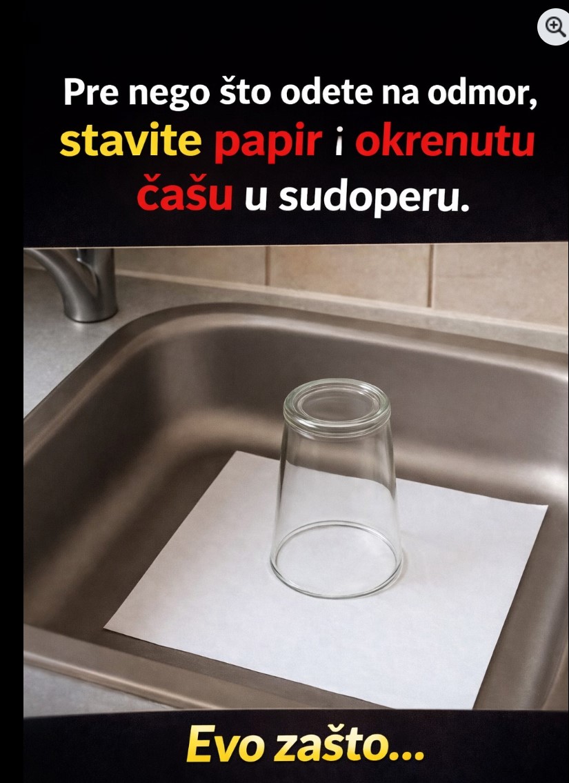 U današnjem članku vam pišemo o neobičnom, ali veoma korisnom triku koji može pomoći da vaš dom ostane uredan i bez neugodnih iznenađenja dok ste odsutni – riječ je o tome šta se dešava ako ostavite okrenutu čašu i parče papira u sudoperi prije nego što krenete na odmor.